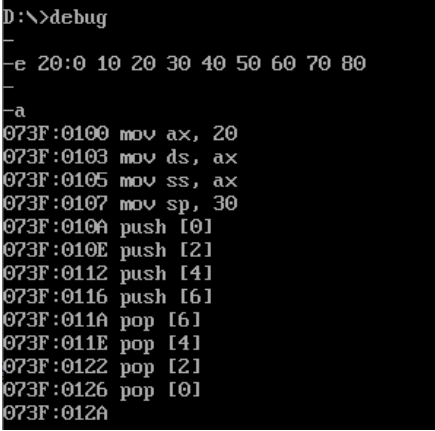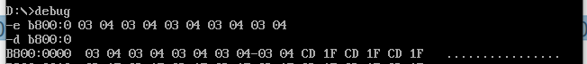 (2)在debug中,使用f命令,向内存单元批量填写数据