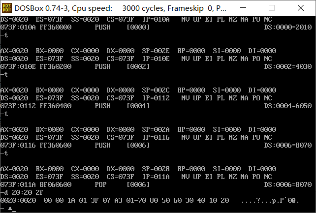 pop [0] ; 执行后,寄存器(sp) 在 _0030___处