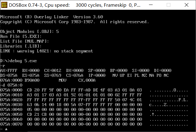 实验一:练习使用masm、link得到8086汇编可执行程序及运行程序方法