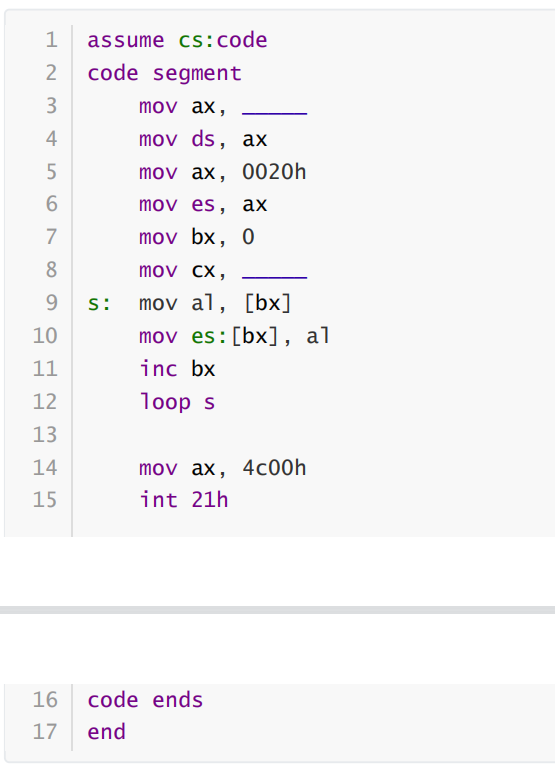 第一空:cs 将cs的代码通过寄存器ax赋值给ds