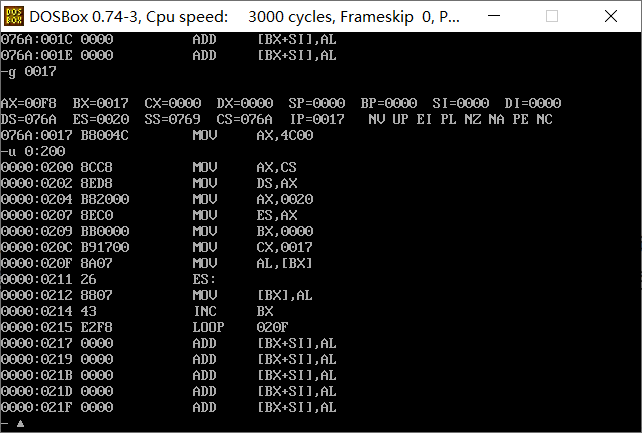 实验1 8086汇编指令编码和调试