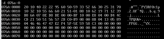1 assume cs:code 2 3 code segment 4 start: 5 ; 42 interrupt routine install code 6 mov ax, cs 7 mov ds, ax 8 mov si, offset int42 ; set ds:si 9 10 mov ax, 0 11 mov es, ax 12 mov di, 200h ; set es:di 13 14 mov cx, offset int42_end - offset int42 15 cld 16 rep movsb 17 18 ; set IVT(Interrupt Vector Table) 19 mov ax, 0 20 mov es, ax 21 mov word ptr es:[42*4], 200h 22 mov word ptr es:[42*4+2], 0 23 24 mov ah, 4ch 25 int 21h 26 27 int42: 28 jmp short int42_start 29 str db "welcome to 2049!" 30 len equ $ - str 31 32 ; display string "welcome to 2049!" 33 int42_start: 34 mov ax, cs 35 mov ds, ax 36 mov si, 202h 37 38 mov ax, 0b800h 39 mov es, ax 40 mov di, 24*160 + 32*2 41 42 mov cx, len 43 s: mov al, [si] 44 mov es:[di], al 45 mov byte ptr es:[di+1], 2 46 inc si 47 add di, 2 48 loop s 49 50 iret 51 int42_end: 52 nop 53 code ends 54 end start