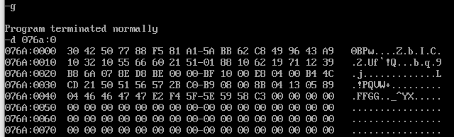 1 assume cs:code 2 3 code segment 4 start: 5 int 42 6 7 mov ah, 4ch 8 int 21h 9 code ends 10 end start