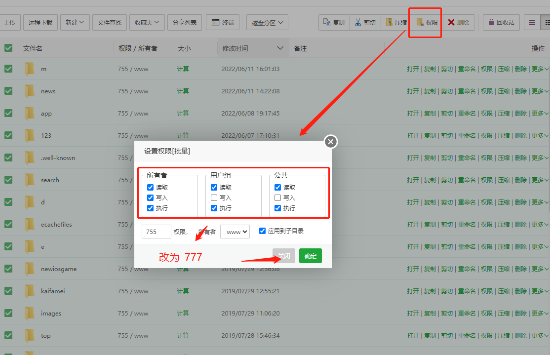 1.整站文件权限不够,需要设置整站文件权限为 777(注意:搭建完成后,我们需要重新设置回来,避免遭到渗透);配置完成后再进行刷新