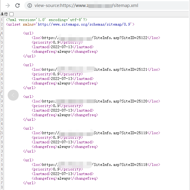 3.访问sitemap.xml,查看格式,如图即可,并在百度站长进行提交。