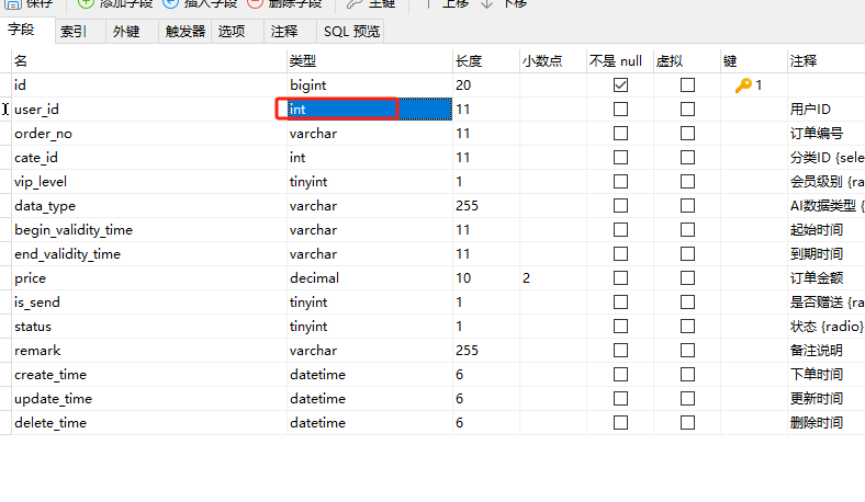 然而user_id的格式是 字母+数字,显然字符串更适合,所以修改类型为varchar更好,修改即可解决!
