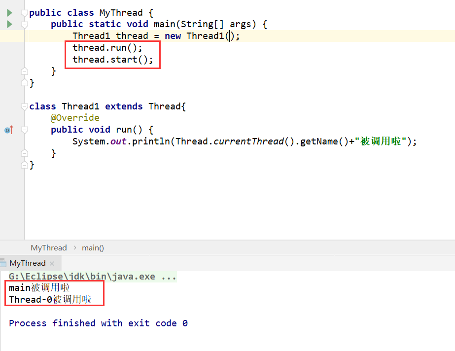 注意:开启线程要使用start()方法,run()方法只是普通的方法调用。