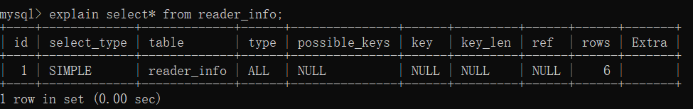 1.4 type:访问类型,是较为重要的指标,常见类型:system>const>eq_ref>ref>range>index>all。一般来说,要保证查询至少达到range级别。