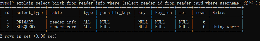 2)PRIMARY // 查询中如果包含其它复杂子部分,最外层查询被标记为PRIMARY。