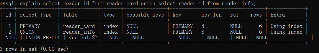5)UNION //若第二个select出现在union之后,则被标记为union;