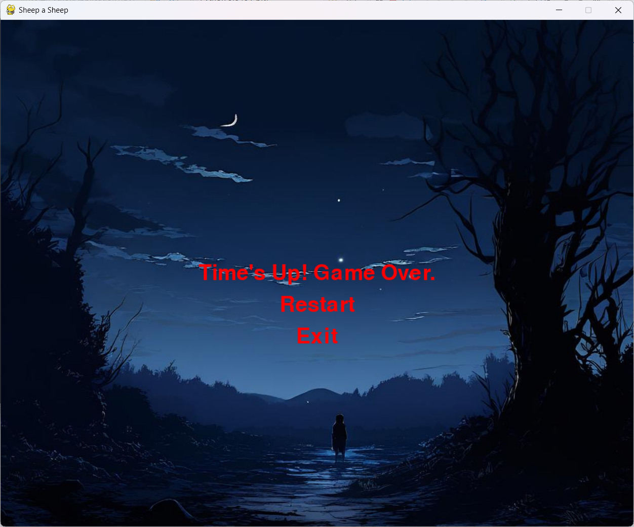 当玩家未能在限定时间内通过该游戏,游戏会显示失败界面:界面显示"Time's Up! Game Over."玩家可以选择点击"Restart"重新开始游戏,或者选择点击"Exit"退出游戏。