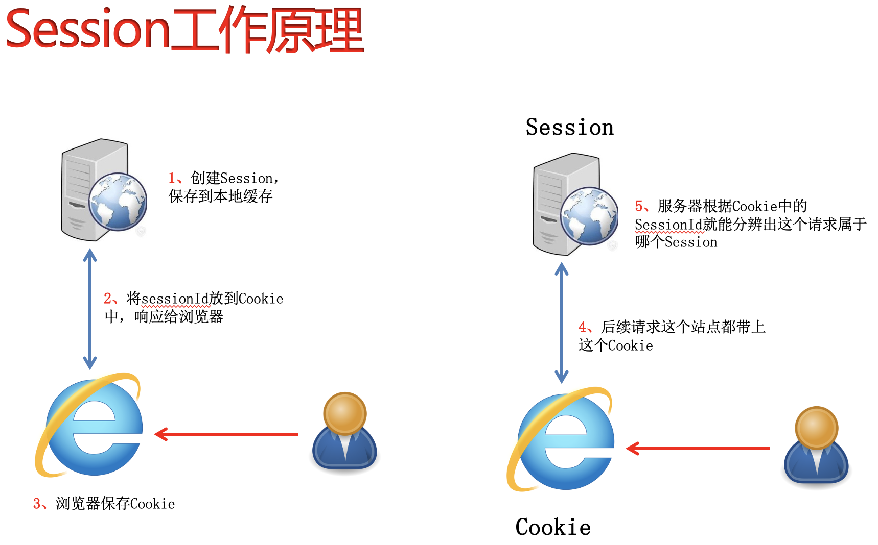 想解决分布式Session共享的问题,首先我们需要先知道Session的工作原理是什么: