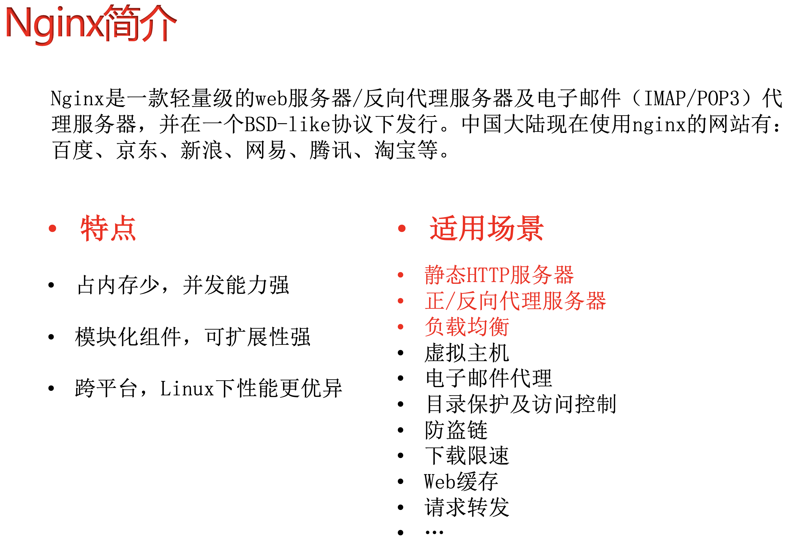 下面主要介绍一下非常流行的Nginx,具体详见下图: