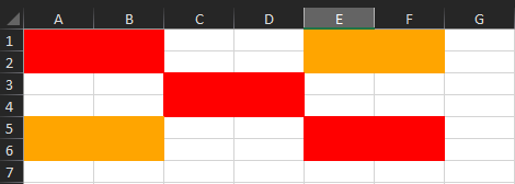ws.Ranges("A5:B6,E1:F2").Style.Fill.BackgroundColor = XLColor.Orange;