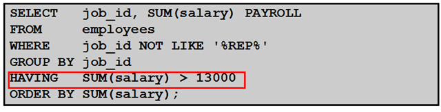 Can’t use the WHERE clause to restrict groups, but use the HAVING clause to restrict groups.