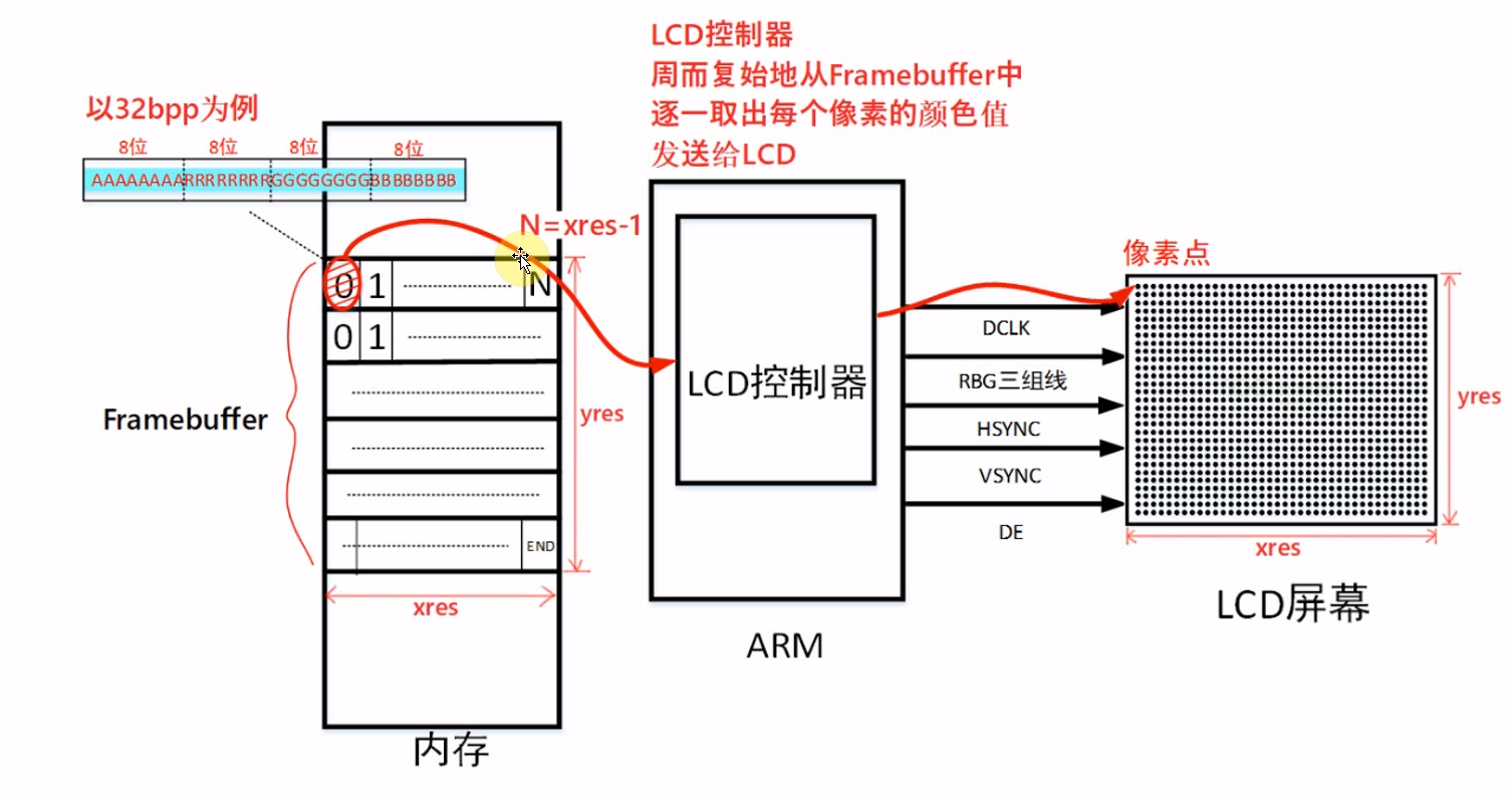 在linux系统中通过framebufferq驱动程序来控制lcd