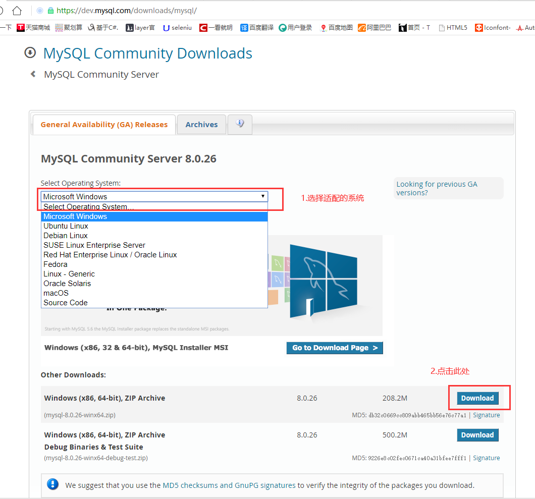 快速下载链接 https://dev.mysql.com/Downloads/MySQL-8.0/mysql-8.0.26-winx64.zip,如此链接失效请按照下方说明下载