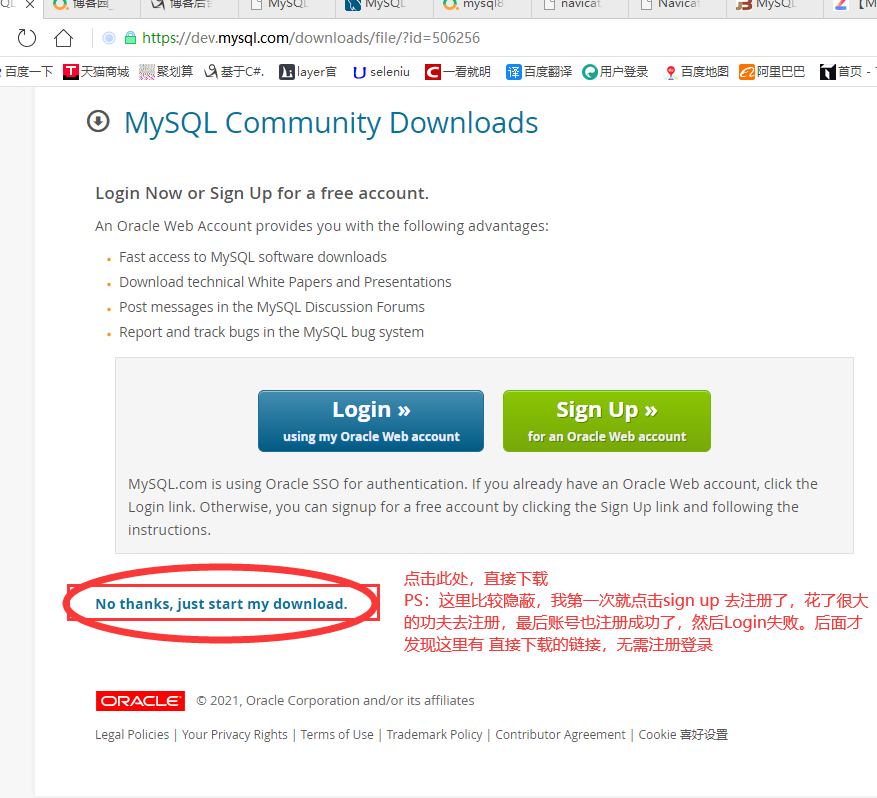 5. 直接点击No thanks, just start my download.进行下载,不需要点击Sign UP 和Login