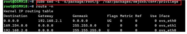 sudo sed -i 's/package/root/g' /var/packages/owjdxb/conf/privilege