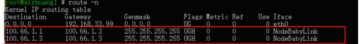 4.此时在控制台输入 route -n 可以查看到新增的 10.x.x.x 网段路由信息。
