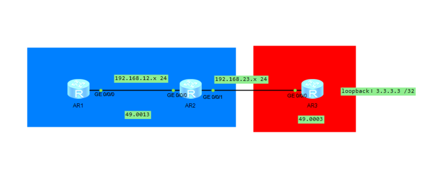 注意:在实验中,用的是区域和系统ID是:49.0001.0000.0000.0001.00,在实际中不能这样,实际中每个区域都有规定的划分区域和系统ID,一般运营商都在用isis协议。