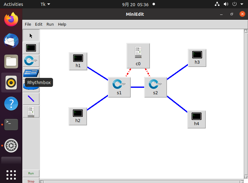 2.使用Mininet的命令行生成如下拓扑:
