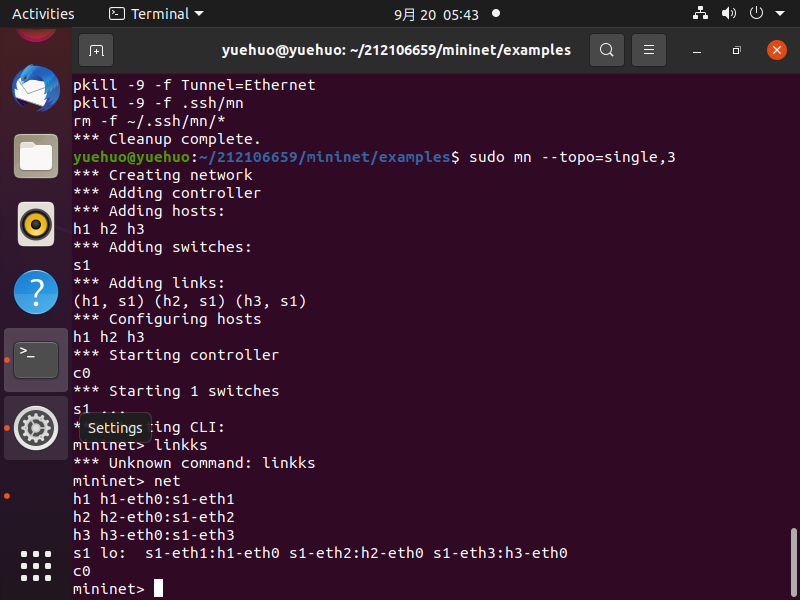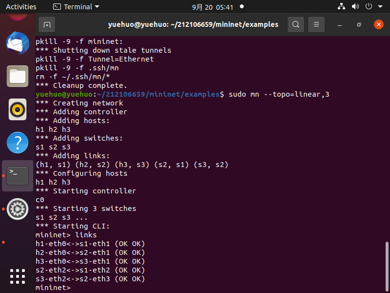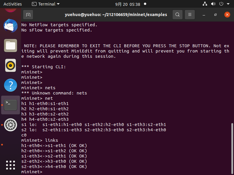 4.创建新的拓扑时候第一时间用sudo mn -c清除上一次的拓扑信息
