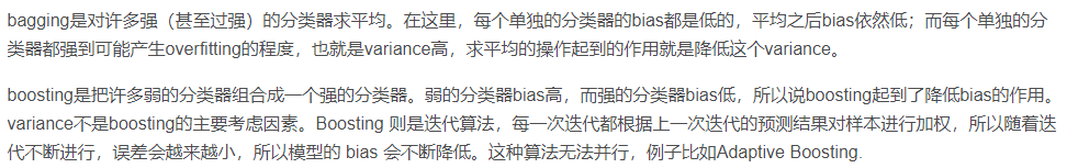 - 主要有bagging、boosting、stacking三种,其中bagging需要基学习器同时具备高性能与高度的数据敏感性,boosting算法在训练有噪声数据时容易产生过拟合问题。