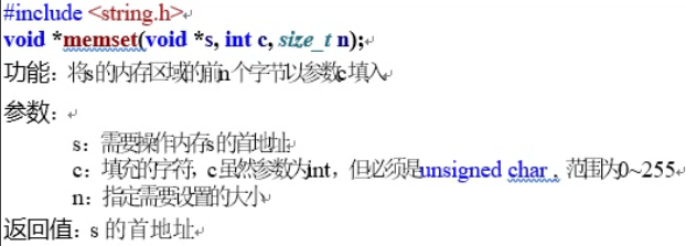 - memset()函数的主要作用就是初始化的时候给一块内存区域置零。