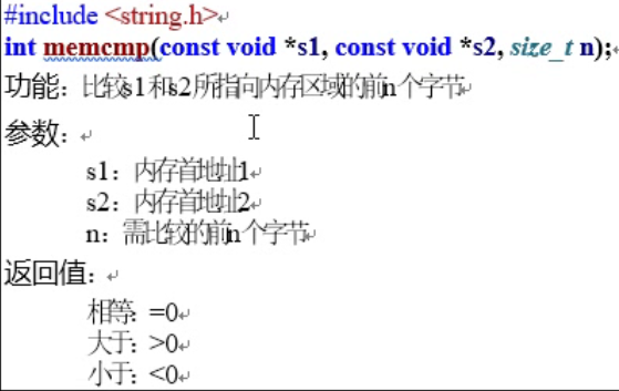 - 比较两块内存区域存储数据的大小,也是基于字节进行依次比较
