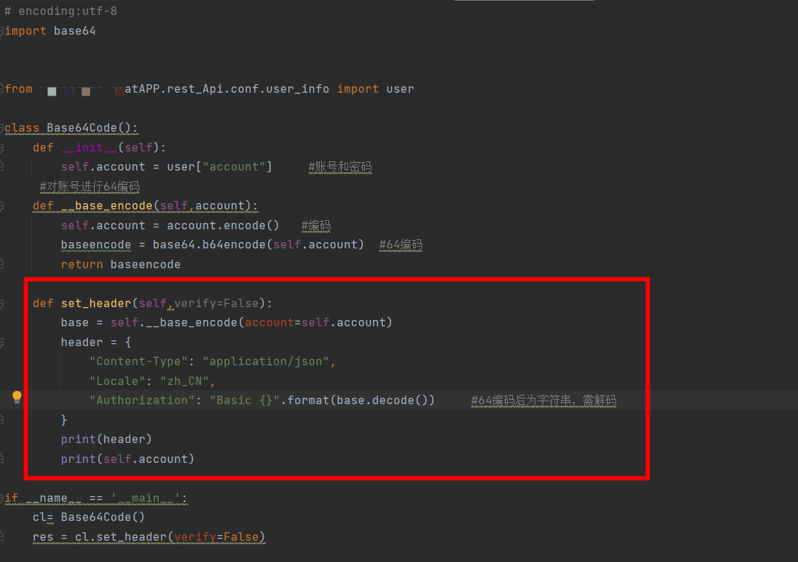 1、在做api接口自动化时,请求的头部需要鉴权处理,账号信息要先进行64编码,首先要从配置文件中获取到账号和密码