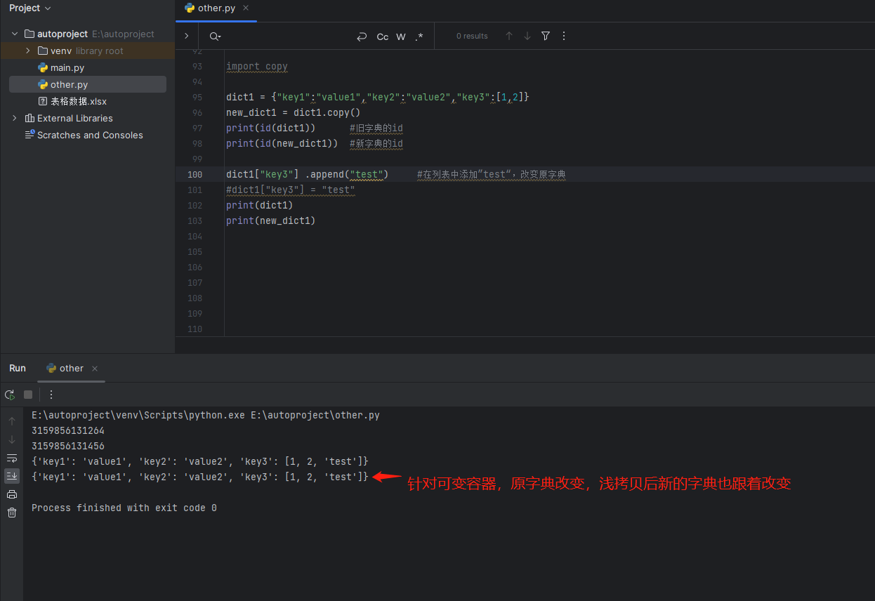 1、针对不可变容器,深浅拷贝效果相同,浅拷贝效果