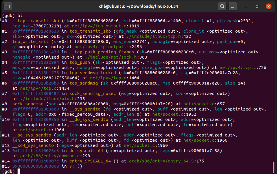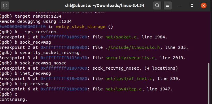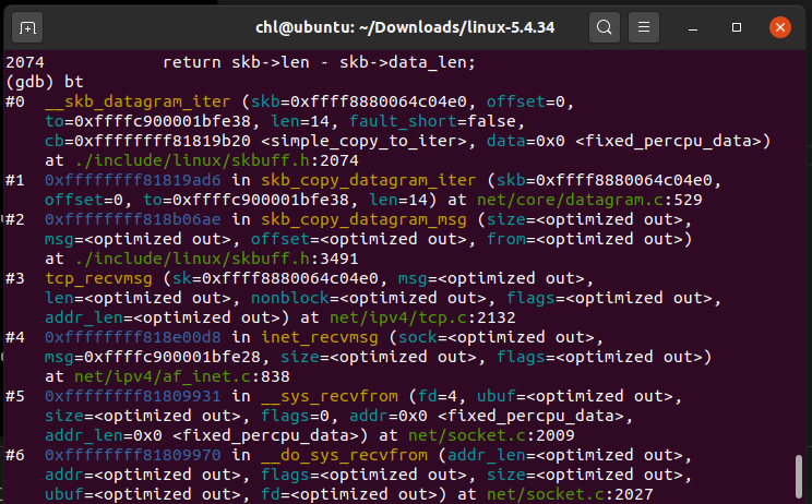recv_from(),发起系统调用__sys_recvfrom() __sys_recvfrom()中会创建一些需要的结构体,如struct msghdr。最终调用sock_recvmsg()。sock_recvmsg()先调用security_socket_recvmsg()进行安全性检查,然后再调用sock_recvmsg_nosec()函数接收数据。sock_recvmsg_nosec()函数会调用inet_recvmsg()inet_recvmsg()函数是间接调用了tcp_recvmsg或者udp_recvmsg,而这取决于传入的sock->sk->sk_prot中的类型,在本次实验中,socket初始化中,已经将sk_prot定义为tcp_prot,也就是说将会执行tcp_recvmsg()函数。