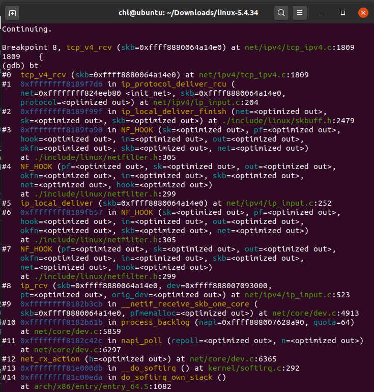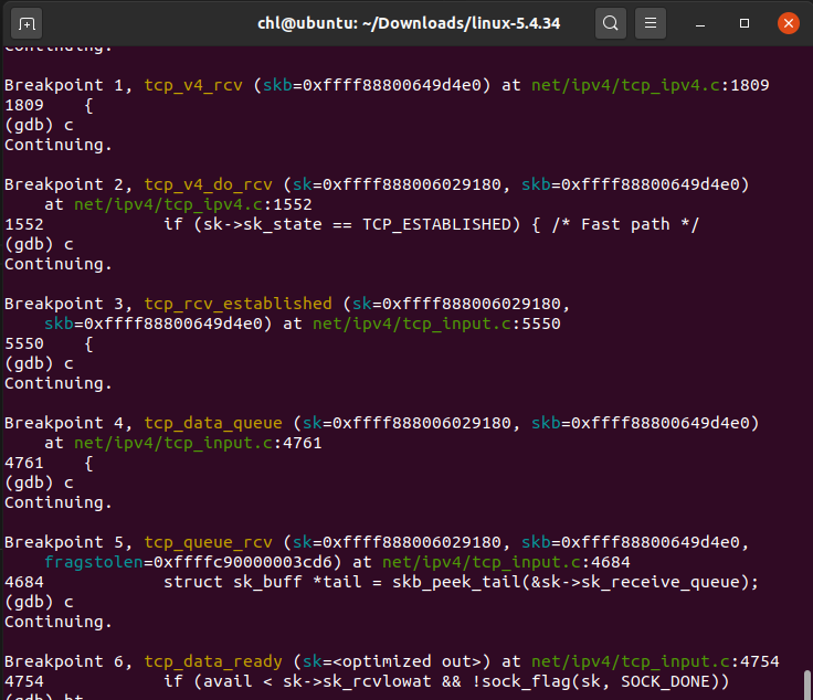 tcp_v4_rcv()将数据传入传输层,并且调用tcp_v4_do_rcv()。tcp_v4_do_ecv()检查状态如果是established,就调用tcp_rcv_established()函数。tcp_rcv_established用于处理已连接状态下的输入,处理过程根据首部预测字段分为快速路径和慢速路径,最终everything is ok的情况下执行tcp_data_queue()。tcp_data_queu()使用tcp_queue_rcv()将数据加入到接收队列中。- 最终