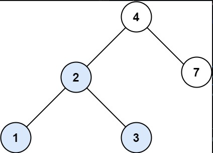 你需要在 BST 中找到节点值等于 val 的节点。 返回以该节点为根的子树。 如果节点不存在,则返回 null 。