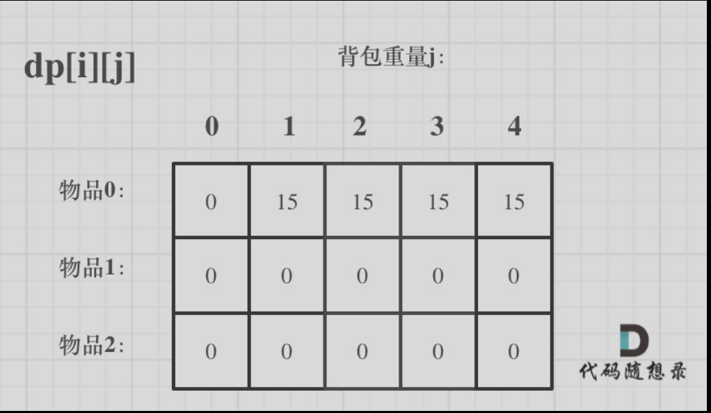 初始化代码:// 初始化 dp vector<vector<int>> dp(weight.size(), vector<int>(bagweight + 1, 0)); for (int j = weight[0]; j <= bagweight; j++) { dp[0][j] = value[0]; } - 遍历顺序以及代码