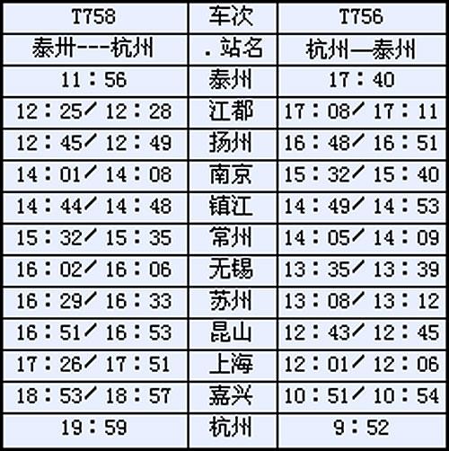 泰州至杭州时刻表