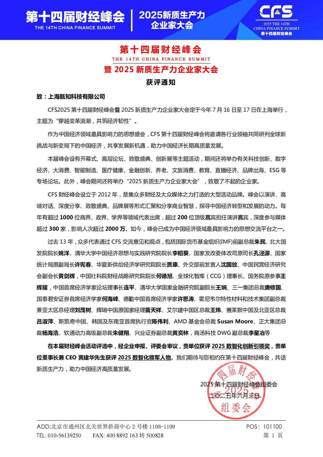 荣膺双奖|甄知科技荣登2025财经峰会巅峰时刻