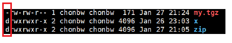 使用ll指令时可以用来查看文件的属性,其中前面的十个字符中第一个字符区分文件类型