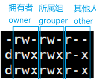 说明:从左到右,三位数字分别代表拥有者,所属组和其他人的权限,具体参考文件权限的数值表示法