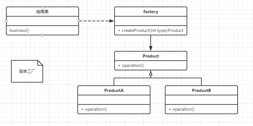 - 简单工厂:只有一个工厂类,将对象的创建放在同一个工厂类中,根据参数的不同去创建不同的对象并返回。