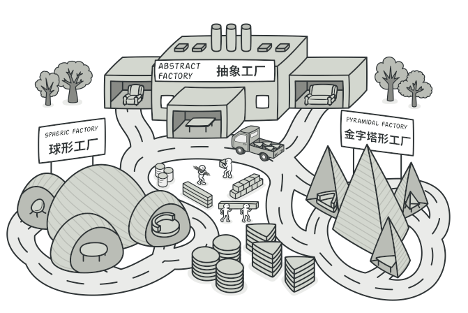 - 抽象工厂:有多个工厂,一种类型的工厂可以生产多种不同样的产品,但是所有工厂生产的产品又是类似的。用户自己去根据需求获取不同的工厂,然后自己获取各种不同的产品。例如说文具店有晨光、得力,这就相当于工厂。他们都生产笔,笔记本。但是晨光生产铅笔,得力生产圆珠笔;晨光生产牛皮本,得力生产车线本。(注意,并不是给工厂类加了abstract就算抽象工厂啊,这是掩耳盗铃,自欺欺人而已)