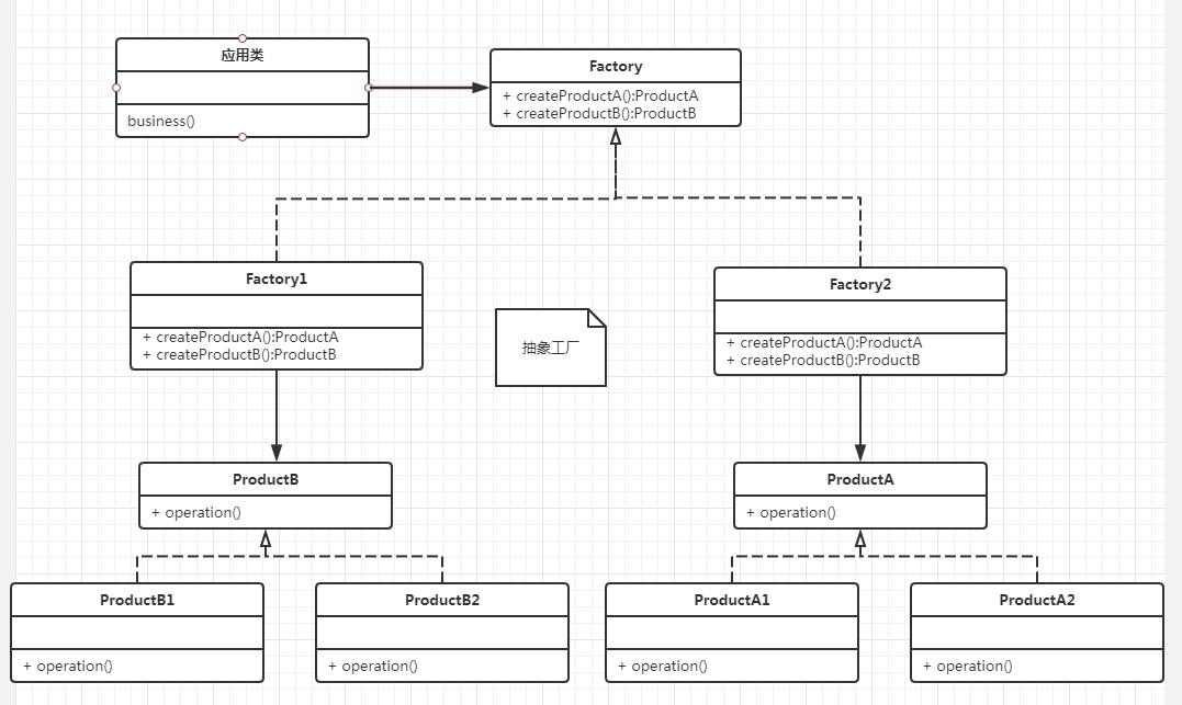 - 工厂模式:有多个工厂,一个工厂对应一种产品,也就是一个工厂只能生产一种产品,应用自己去获取不同的工厂,然后生产产品。