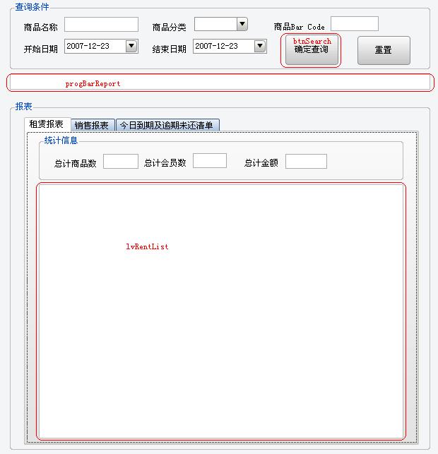 1.拖一个ProgressBar,一个ListView,一个Button到Winform中.我将ProgressBar命名为progBarReport,ListView命名为lvRentList,Button命名为btnSearch