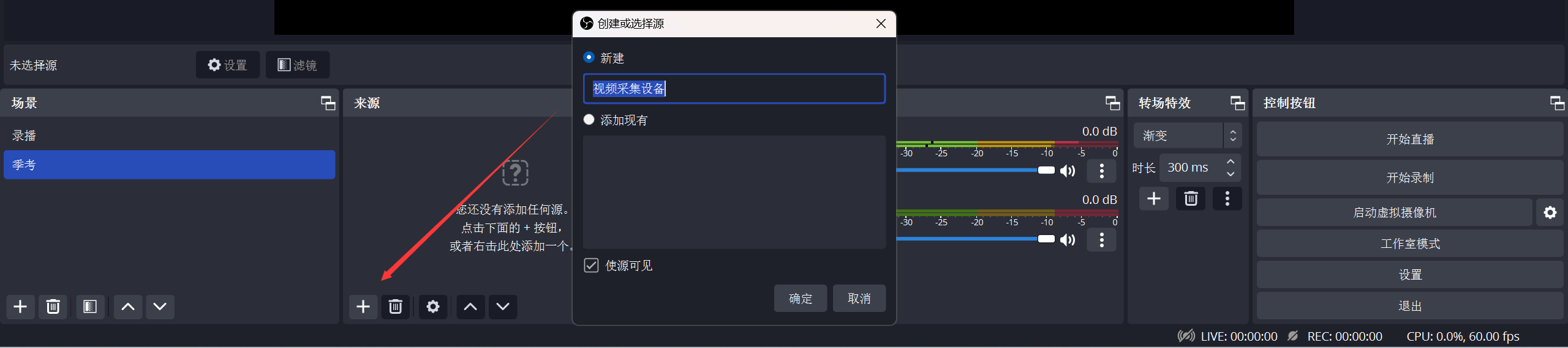 - 上图,添加视频采集设备