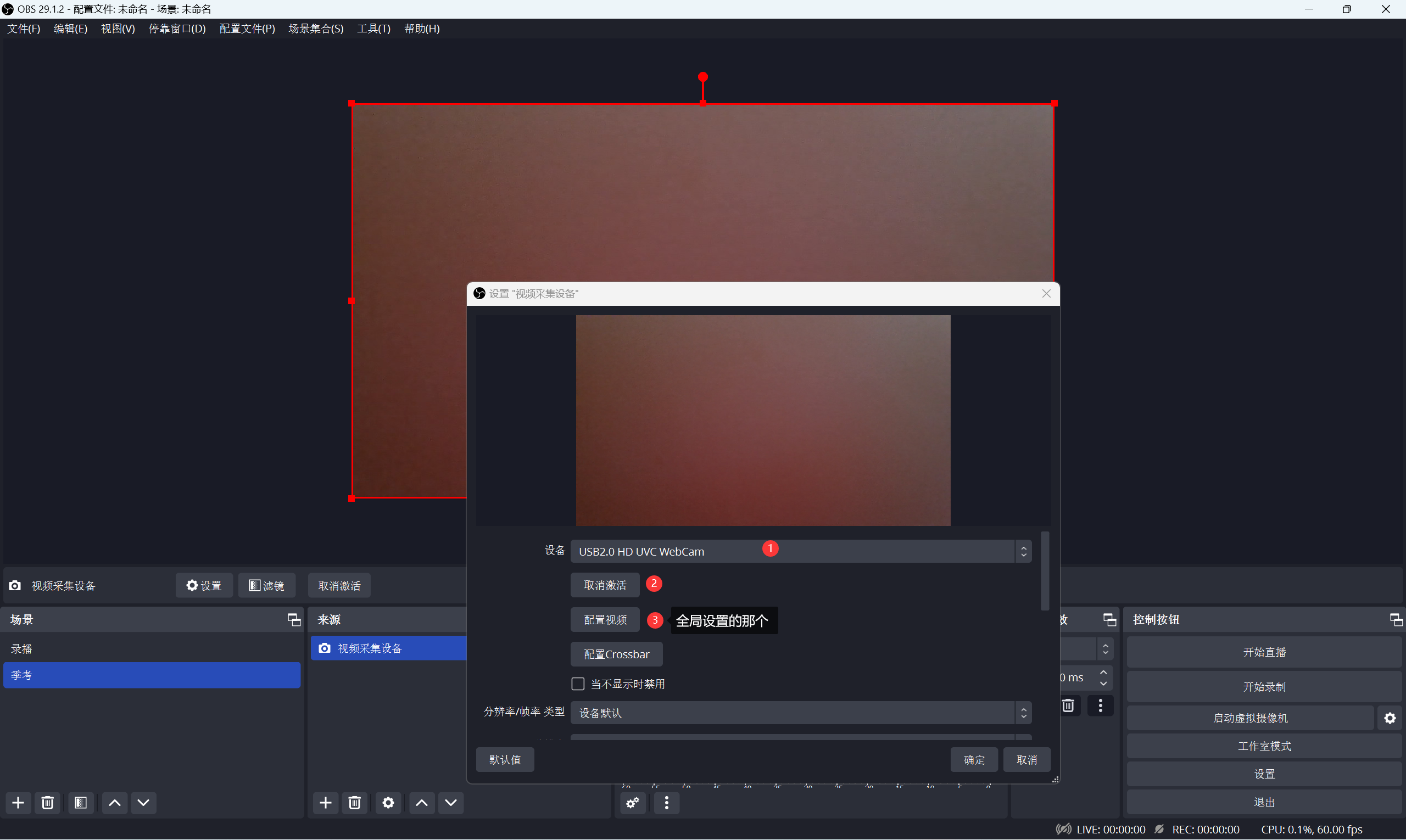 - 举例腾讯会议,在视频设置,选择 obs 的虚拟摄像头即可,其他都正常设置