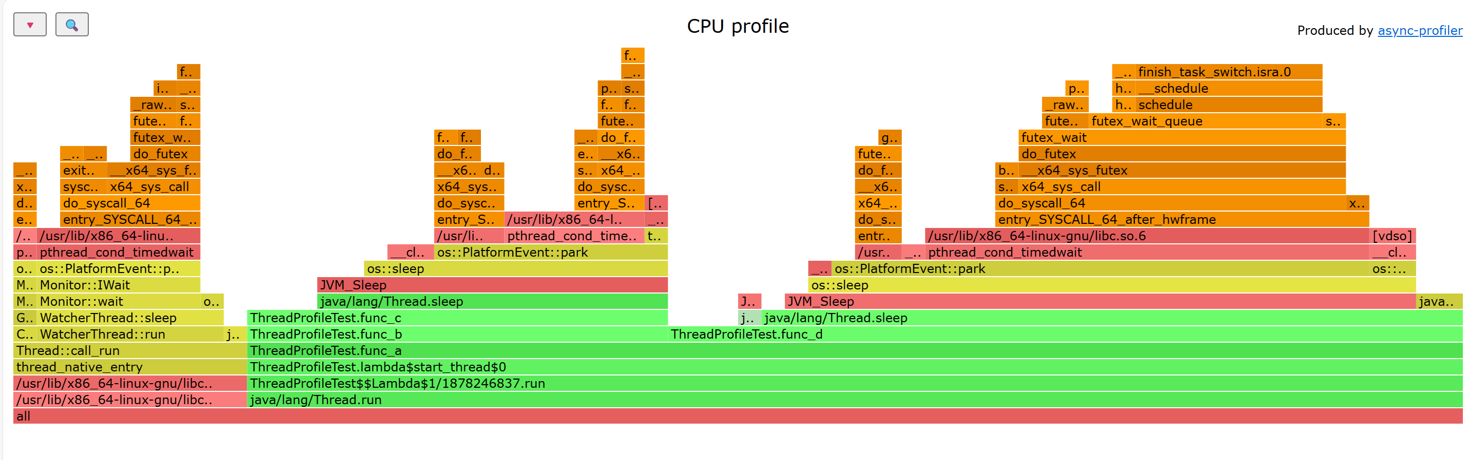 java可以使用async-profiler工具采集cpu的使用情况,看看这个demo最终形成的cpu火焰图长什么样子