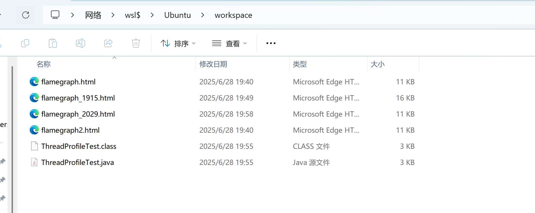 9.我上一步指定了将火焰图放在/workspace目录,所以在自己pc机的文件资源管理器中输入\\wsl$\Ubuntu\workspace然后就可以看到生成的火焰图,直接使用浏览器打开即可