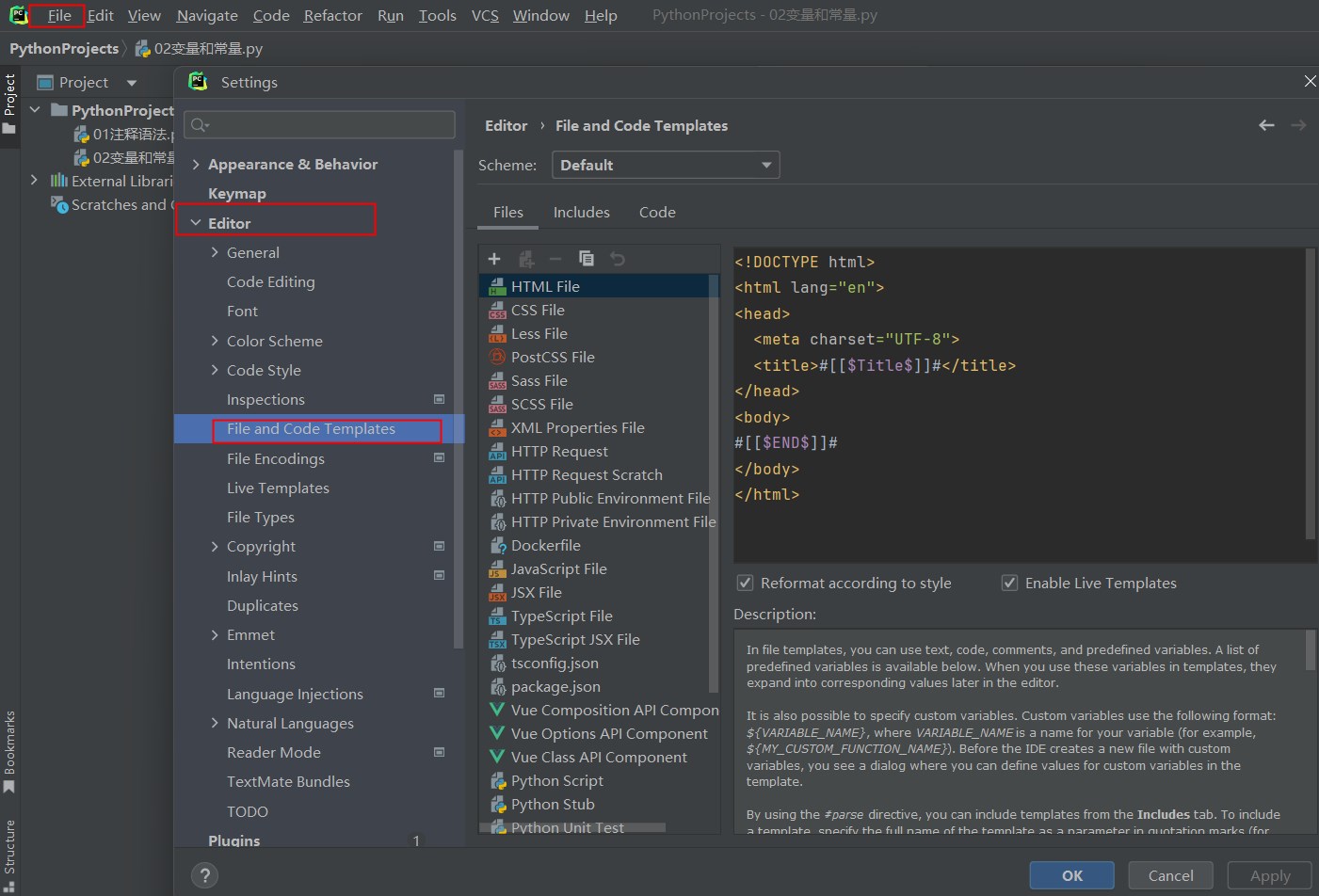- ${NAME} - 在创建文件的对话框中指定的文件名;