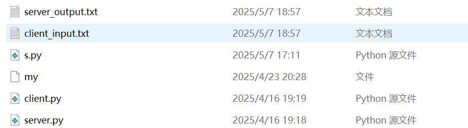 1.将服务端、客户端代码和txt文件放在同个文件夹中: